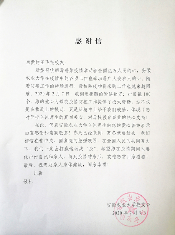 疫情防控-我公司总经理积极响应母校(xiào)疫情防控工(對和gōng)作!